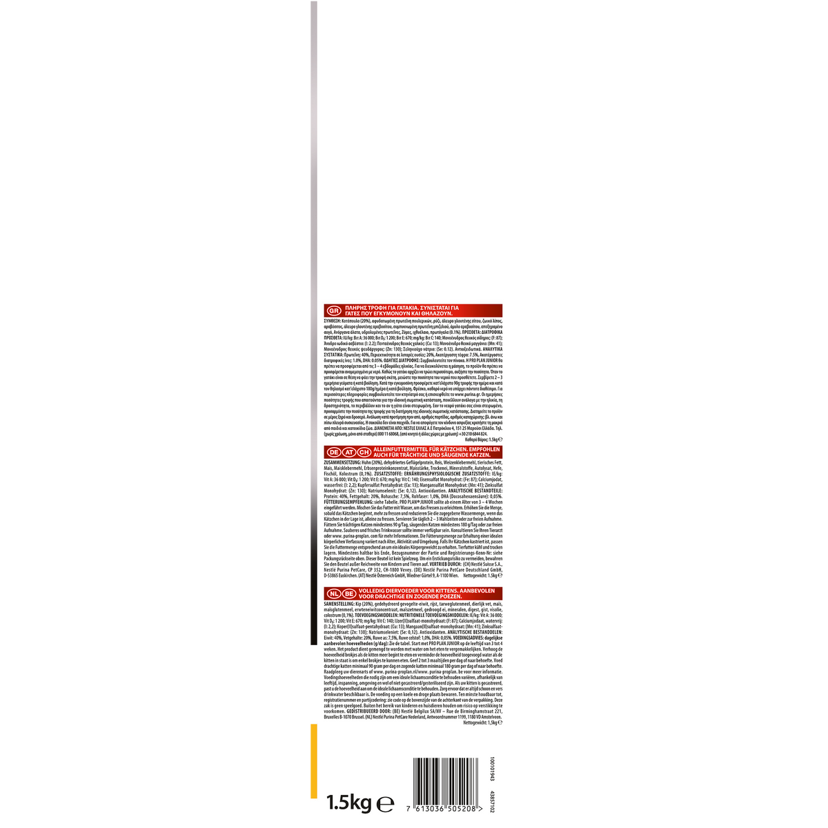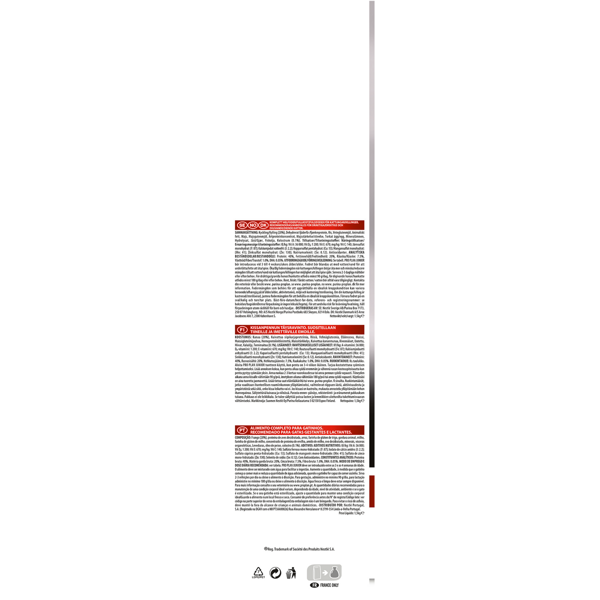 يأتي هذا المنتج بحجم مثالي يبلغ 1.5 كجم، ما يجعله مناسبًا للاستخدام اليومي مع ضمان الاحتفاظ بجودته لفترة طويلة. بالإضافة إلى ذلك، يتميز بأنه خالٍ من المكونات الضارة، مما يوفر تغذية طبيعية وآمنة. مع بورينا برو بلان، تأكد أنك تمنح قطتك أفضل بداية ممكنة لحياة مليئة بالطاقة والصحة.